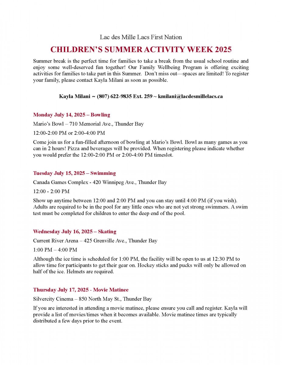 We consider anyone participating in the LAC DES MILLE LACS FIRST NATION Website to be implicitly agreeing to abide by the above terms and conditions. Should you have any questions in relation to the LAC DES MILLE LACS FIRST NATION Website, please send us a message or use the "Contact Us" form by clicking here.