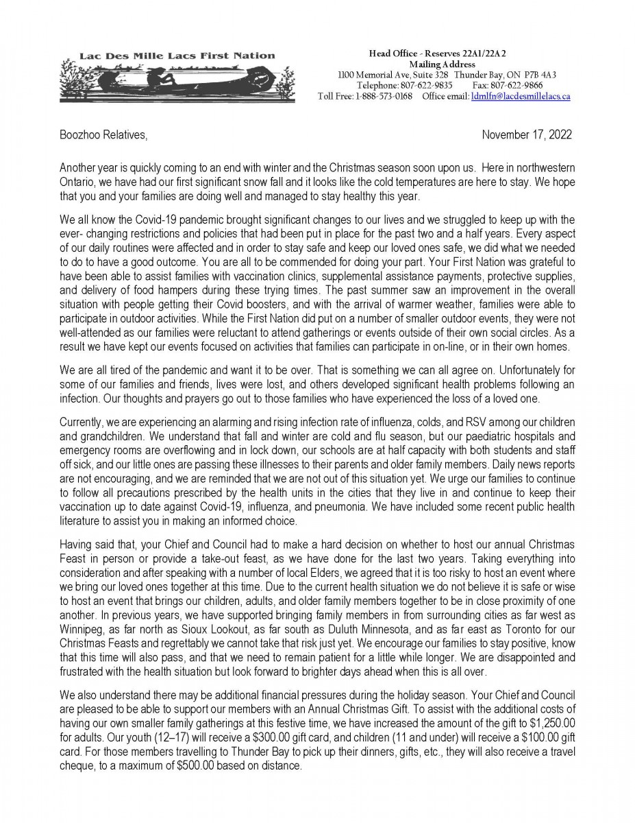 We consider anyone participating in the LAC DES MILLE LACS FIRST NATION Website to be implicitly agreeing to abide by the above terms and conditions. Should you have any questions in relation to the LAC DES MILLE LACS FIRST NATION Website, please send us a message or use the "Contact Us" form by clicking here.